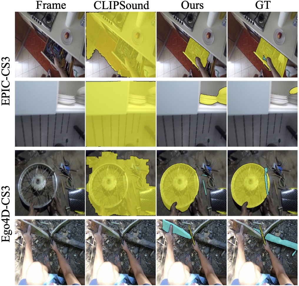Humans excel at multisensory perception and can often recognise object properties from the sound of their interactions. Inspired by this, we propose the novel task of Collision Sound Source Segmentation (CS3), where we aim to segment the objects responsible for a collision sound in visual input (i.e. video frames from the collision clip), conditioned on the audio. This task presents unique challenges. Unlike isolated sound events, a collision sound arises from interactions between two objects, and the acoustic signature of the collision depends on both. We focus on egocentric video, where sounds are often clear, but the visual scene is cluttered, objects are small, and interactions are brief. To address these challenges, we propose a weakly-supervised method for audio-conditioned segmentation, utilising foundation models (CLIP and SAM2). We also incorporate egocentric cues, i.e. objects in hands, to find acting objects that can potentially be collision sound sources. Our approach outperforms competitive baselines by $3 \times$ and $4.7 \times$ in mIoU on two benchmarks we introduce for the CS3 task: EPIC-CS3 and Ego4D-CS3.